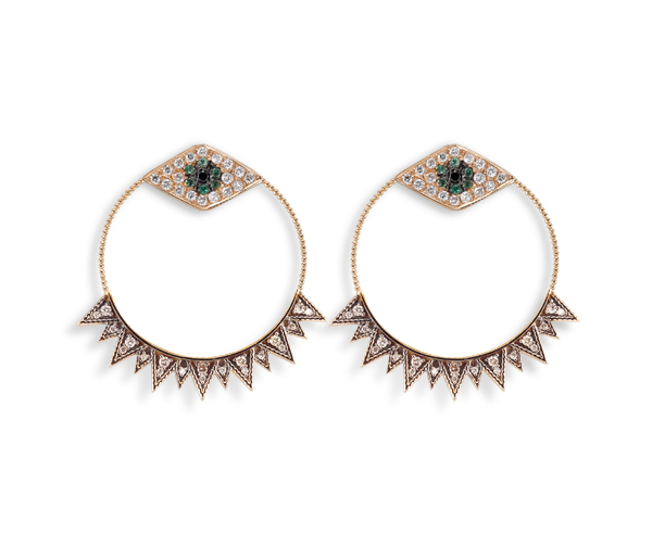 Boucles D’oreilles 18 ct or rose serties en diamands Blancs, Bruns, et Noires- Tzavorite